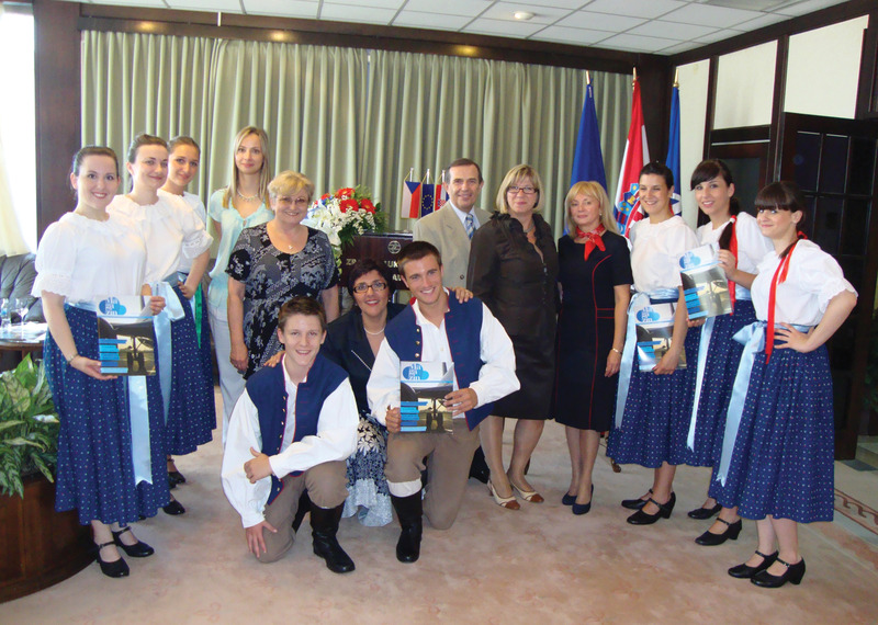 Záhřebské sluníčko 1. července zkrášlilo oslavu 80. výročí prvního mezinárodního letu Českých Aerolinií. Na obrázku spolu s představiteli ČSA Záhřeb, Letiště Záhřeb a České besedy Záhřeb