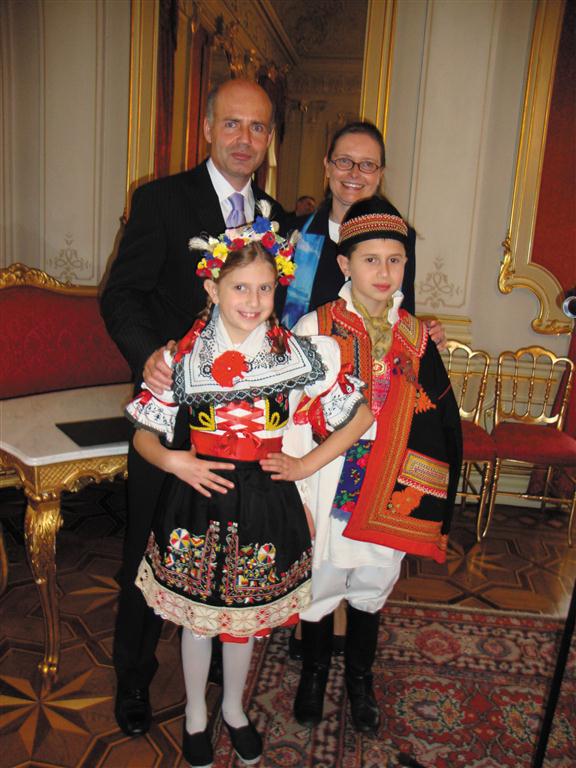 tam krásně zpívali státní hymny obou zemí oblečeni do chorvatského a českého kroje.