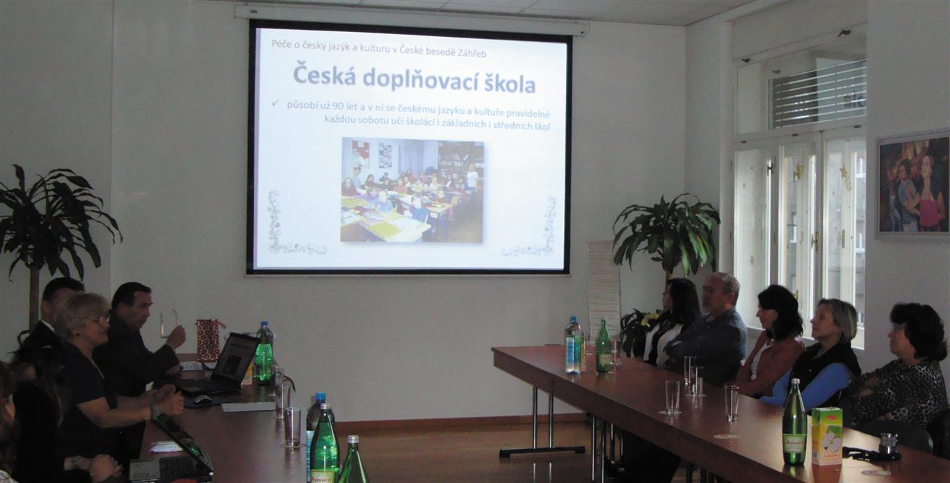 Jiří Bahník, předseda České besedy Záhřeb, udělil listinu čestného členství našeho spolku. Jeho návštěva nás naplnila zvláštní hrdostí, tím spíš, že i on sám zdůraznil přínos Čechů celkovému životu hlavního města a Chorvatska. Česko-chorvatská spolupráce je v našem životním prostředí hluboce zakořeněna, řekl prezident Josipović. Připomenul účast Čechů v boji za svobodu a pomoc ČR při evakuaci dětí z Daruvarska, ohroženého v domovinské válce. Poukázal na blízkost krajanů s občany ČR po vstupu do Unie a vyzval krajany, aby své děti učili česky. Nadšeni spoluprací Rady ČNMMZ a České besedy Záhřeb i česko-chorvatskou vzájemností byli i další mluvčí: Leonora Janotová, předsedkyně Svazu Čechů, Vladimír Bílek, poslanec české a slovenské národnosti v Chorvatském sněmu, Martin Košatka, velvyslenec České republiky, Davor Bernardić, předseda Shromáždění města Záhřebu, Jelena Pavičićová - Vukičevićová, zástupkyně primátora Záhřebu. Program scénickým vystoupením zarámovaly besední perly: Jetelíček, Záhřebské sluníčko, Polka, Bohemia, žáci České doplňovací školy, Lípa a hosté.